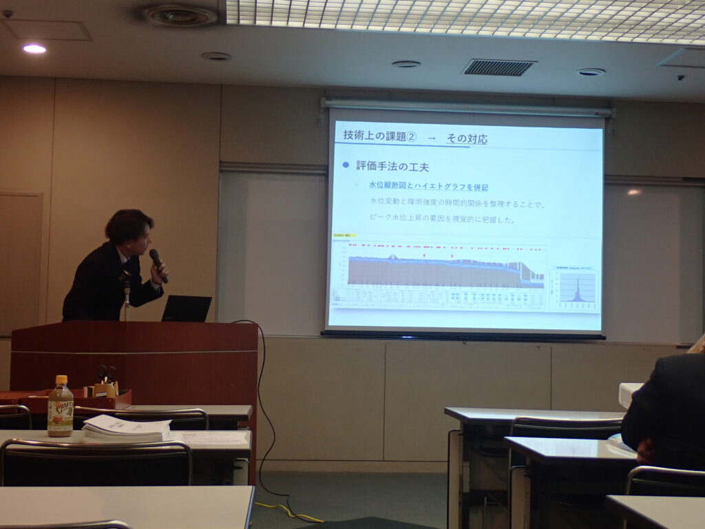 毎年恒例の技術発表会は28回を迎えました。今年度の発表内容として、ゲリラ豪雨における浸水対策として流出解析、解消または流量調査、流下能力検証が見られました。