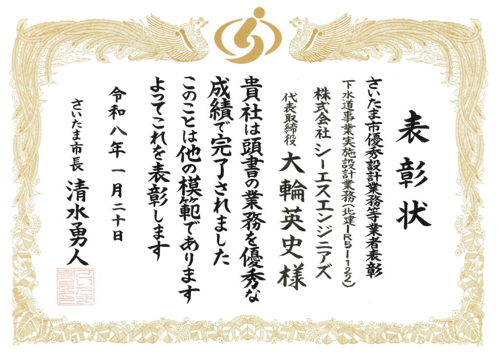 令和7年度さいたま市優秀設計業務等業者表彰を受賞。